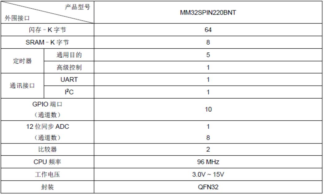 MM32SPIN220B產(chǎn)品提供QFN32封裝形式;下面給出了該系列產(chǎn)品中所有外設的基本介紹。