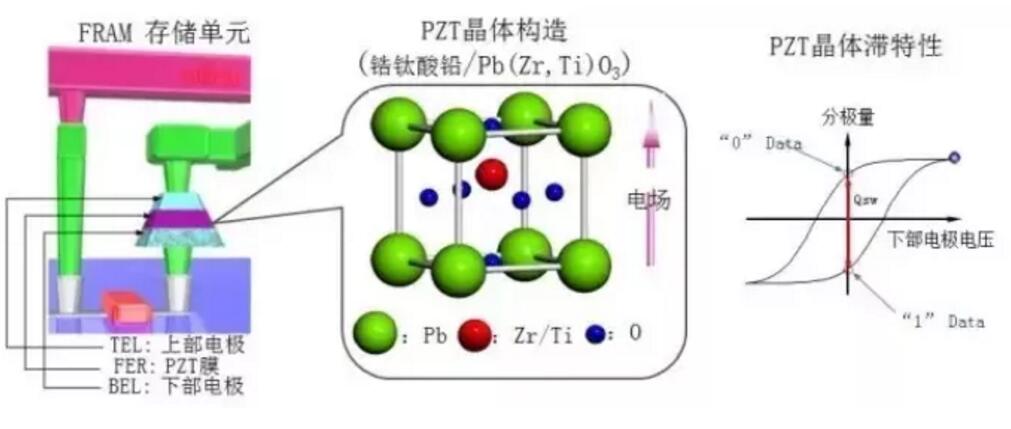 FRAM是運用鐵電材料(PZT等)的鐵電性和鐵電效應來進行非易失性數(shù)據(jù)存儲又可以像RAM一樣操作。