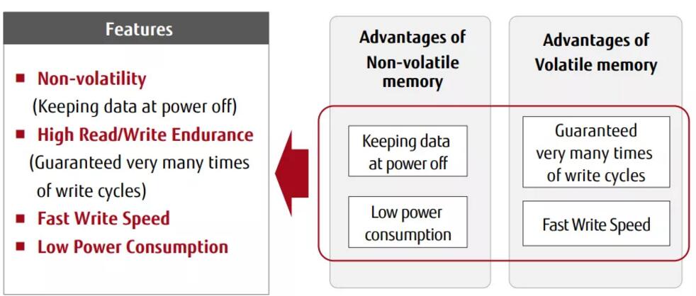 獨特性能成就技術“硬核”,F(xiàn)RAM是存儲界的實力派。除非易失性以外,F(xiàn)RAM還具備三大主要優(yōu)勢:高讀寫入耐久性、高速寫入以及低功耗,這是絕大多數(shù)同類型存儲器無法比擬的。