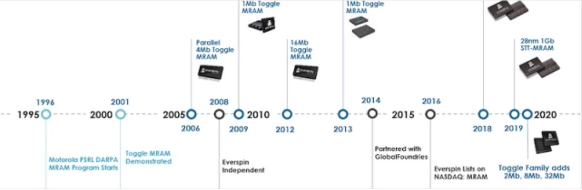 Everspin目前是唯一一家銷售分立的獨立MRAM芯片的公司,并且自2006年以來一直在商業化生產ToggleMRAM。