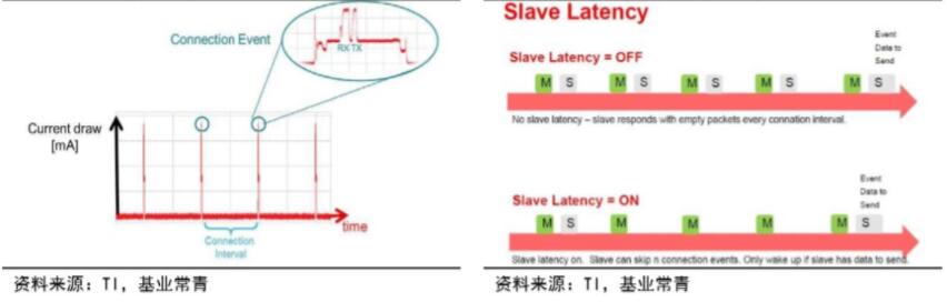 圖2 連接事件和連接間隔的功耗 圖3 從設備對主設備連接事件反應時延